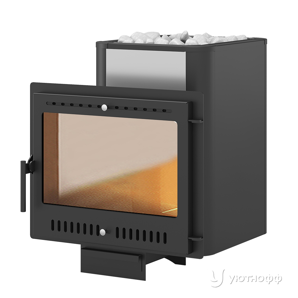 Банная чугунная печь Сенсация 22 Панорама М укомплектована чугунной герметичной дверцей Везувий с жаропрочным стеклом. Объемная, вентилируемая каменка позволяющая максимально быстро нагреть камни с четырёх сторон в кратчайшие сроки, что значительно ускоряет нагревание воздуха в парилке за счёт образуемого им мощного конвекционного потока.