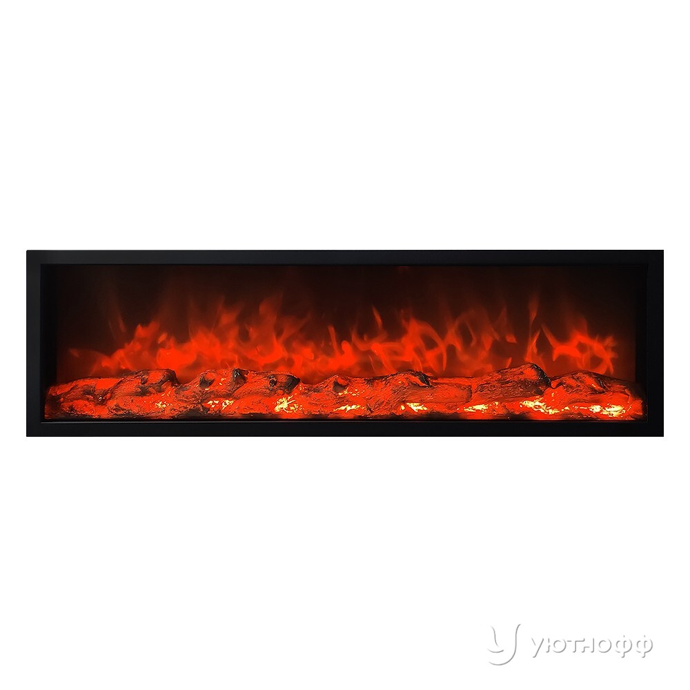 Длинный и невысокий очаг Орион 100 без обогрева для встраивания в ниши или мебель.