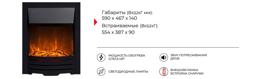 Электрический очаг для вставки в стандартные классические порталы из дерева и камня с зеркальной внутренней стенкой и и улучшенным эффектом пламени.