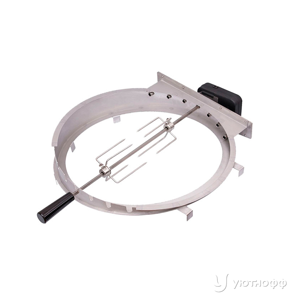Аксессуар существенно облегчает процесс приготовления блюд довольно утомительным классическим способом. Вам не придется подолгу крутить вертел вручную. Достаточно насадить продукты, засечь время и запустить электроприбор.Главные характеристики