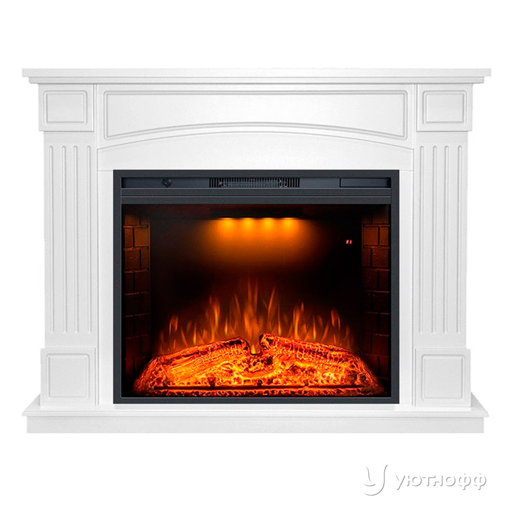 Электрокамин Бостон (каминокомплект) портал Boston белый + широкий очаг Emerald 28