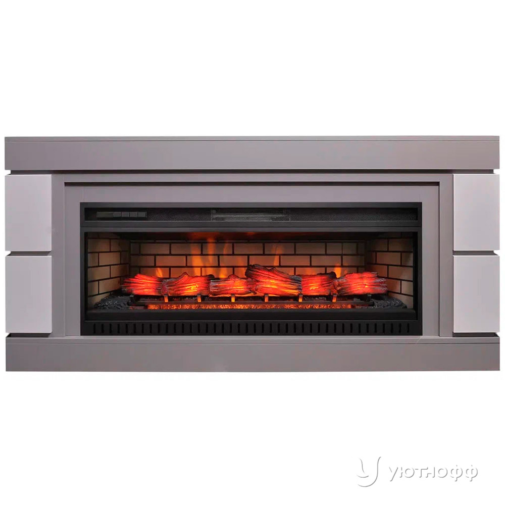 Электрокамин Дэнвер 45 серый камень / белый (каминокомплект) портал RealFlame Denver + широкий очаг Jack 45