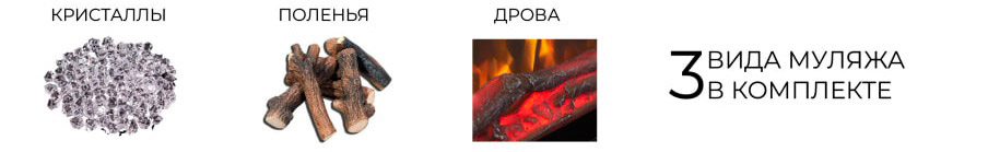 - Визуальный эффект2D-имитация пламени, подсвечивающиеся дрова и кристаллы