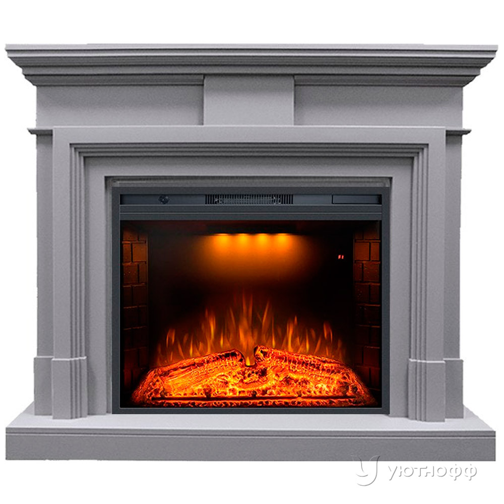 Электрокамин Ковентри серый (каминокомплект) портал Coventry Grey + широкий очаг Emerald 28