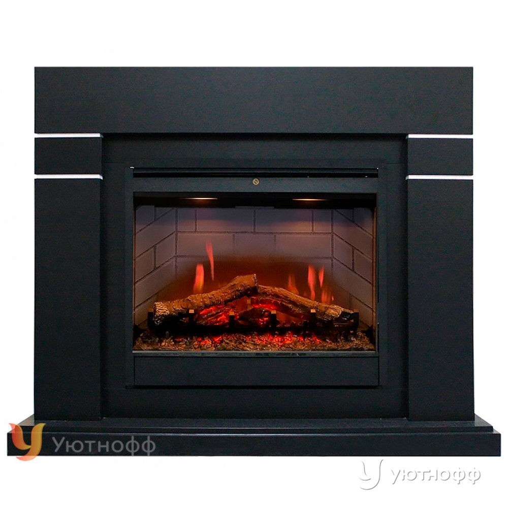 Электрокамин Линдос черный 26 (каминокомплект) портал Lindos Black + широкий очаг Dimplex Symphony 26 DF 2608 NEW
