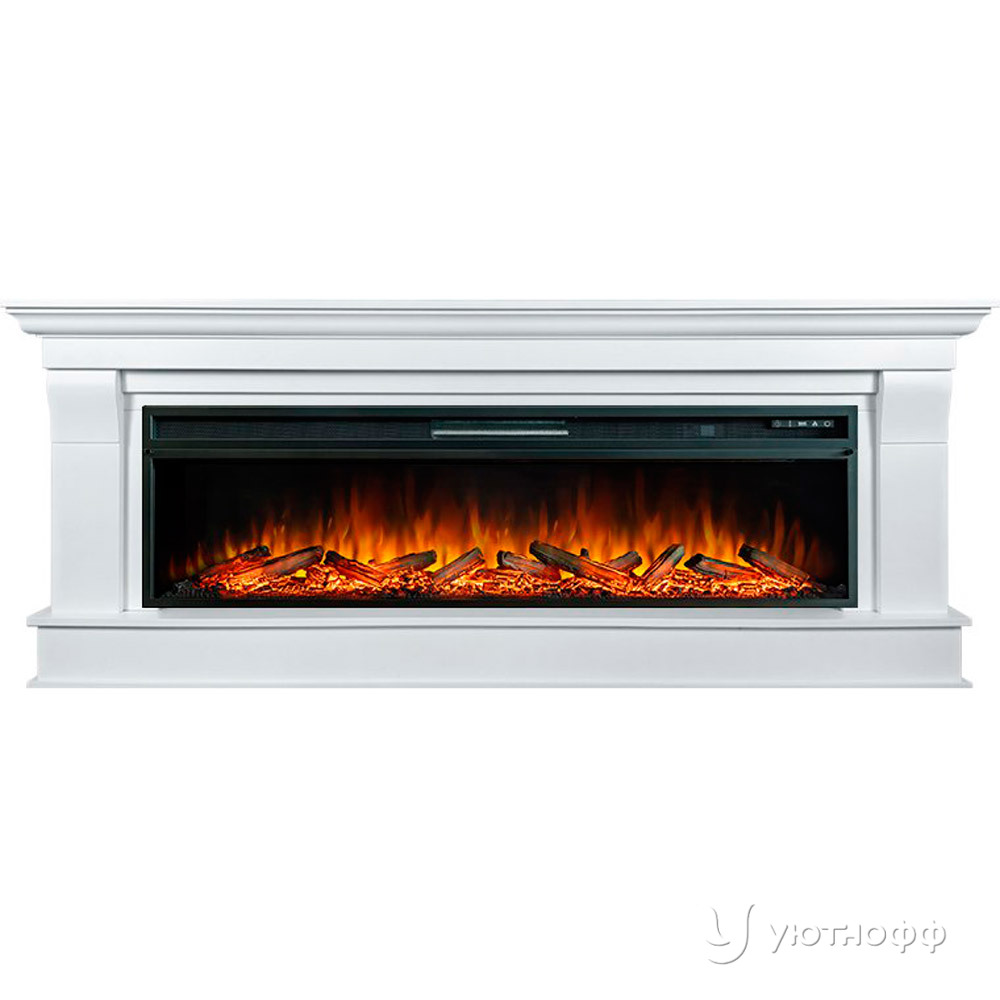 Линейный портал Monaco – интересное решение в белом цвете бьянко с оригинальной резьбой от компании Royal Flame.