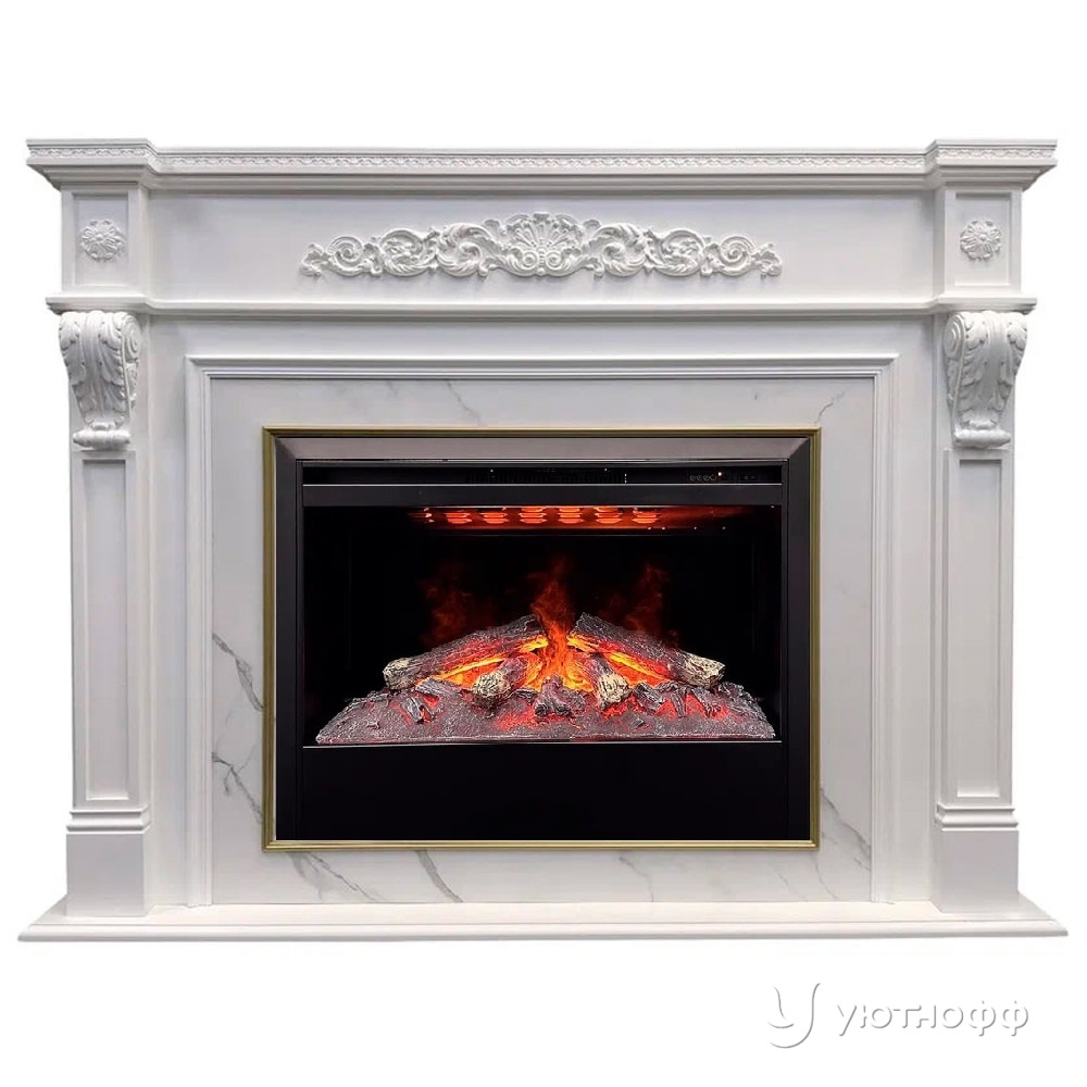 Электрокамин RealFlame Моцарт 3Д 26 белый мрамор (каминокомплект) портал Mozart WT-P511/WT-F512 + очаг 3D Helios 26