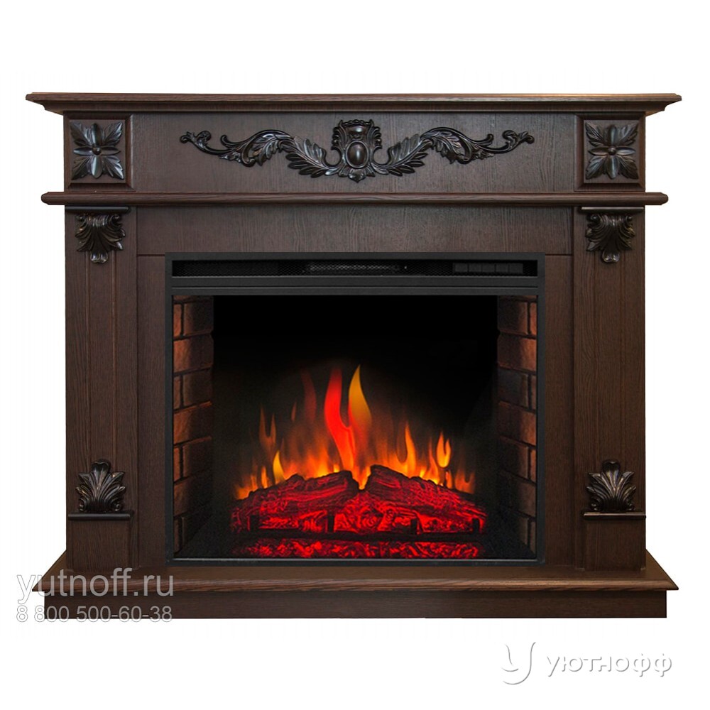 Электрокамин RealFlame Филадельфия 26 темный орех (каминокомплект) деревянный портал Philadelphia DN 26 + широкий очаг Epsilon 26 S IR с инфракрасным обогревом