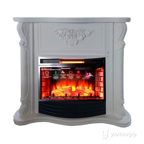 Стенвуд - собранный каминный портал из МДФ + шпон. Фасад декорирован художественной резьбой. Компактные размеры сделают возможным установку электрокамина не только в гостиной, но и в небольшой комнате. Очаг обладает потрясающим эффектом пламени и муляжом дров расположенных за панорамным фронтальным стеклом. С помощью регулятора яркости огня можно задать желаемую яркость пламени (5 уровней регулировки). Обогреватель спрятан в верхней части очага и обеспечивает обогрев в холодную погоду.