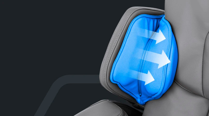 - Воздушно-компрессионный массаж - В кресле предусмотрен воздушно-компрессионный массаж голени, икр и ступней. Вас приятно удивят массажные подушки. Они подстраиваются под анатомию пользователя, что поможет быстрее снять неприятные ощущения в мышцах. Отличный вариант для офисных работников и всех, кто много времени проводит сидя.