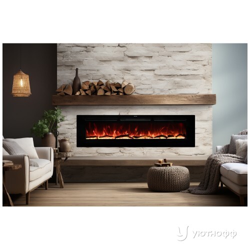 В модели присутствует опция выбора пламени из 13 доступных вариантов, цветовую тему подсветки дров также можно выбрать из 13 предложенных. Для дополнительного комфорта в камин встроена система обогрева Встраиваемая линейная модель Galaxy 60 RF FX от надежного производителя электрических каминов Royal Flame. Реалистичная имитация горящего пламени со звуком имитацией потрескивания дров, уровень звука регулируется.