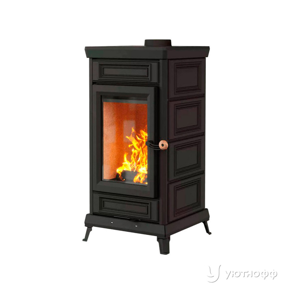 Астов Майолика - это высокоэффективная и компактная дровяная печь в черном цвете с прямым стеклом.