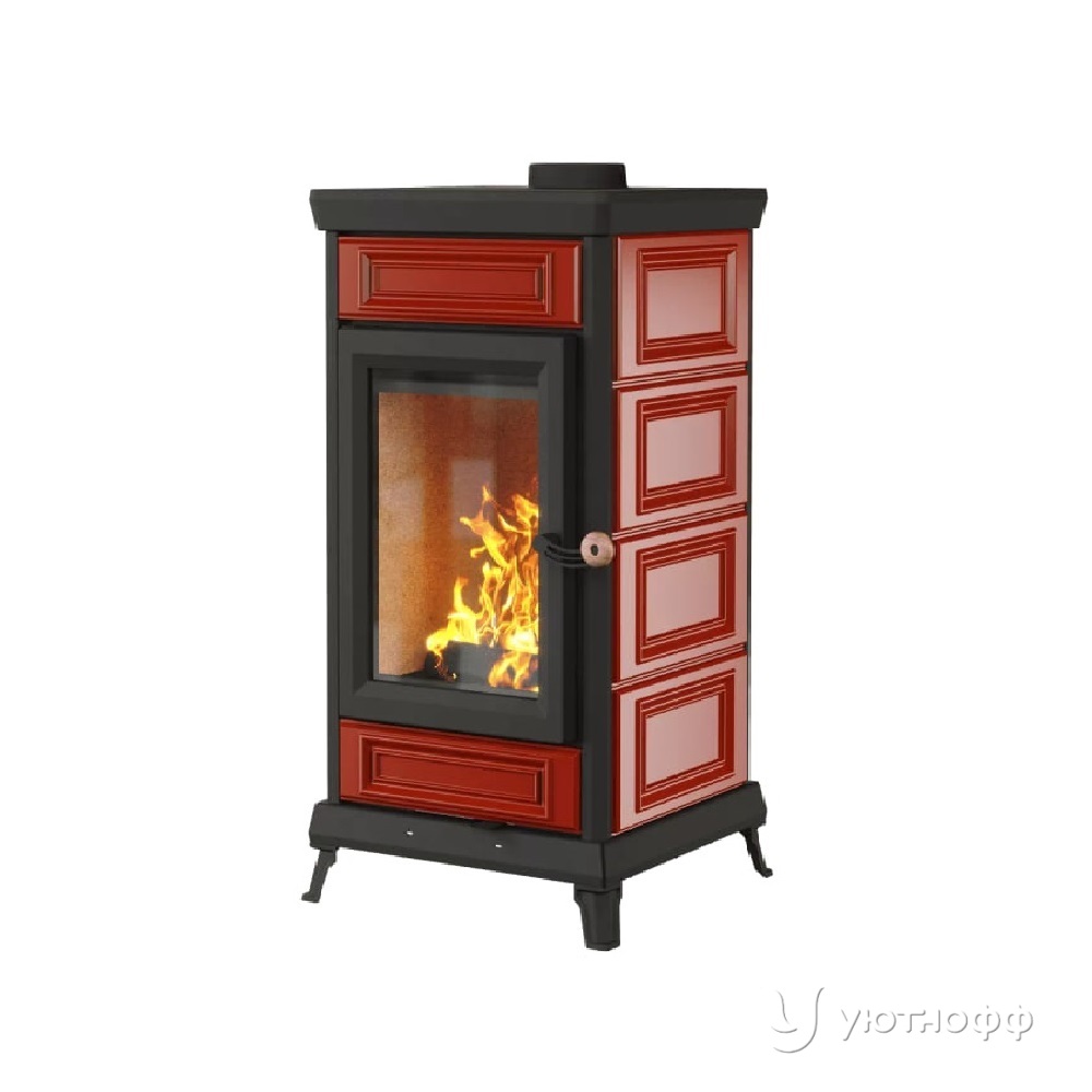 Астов Майолика - это высокоэффективная и компактная дровяная печь в красном цвете с прямым стеклом.