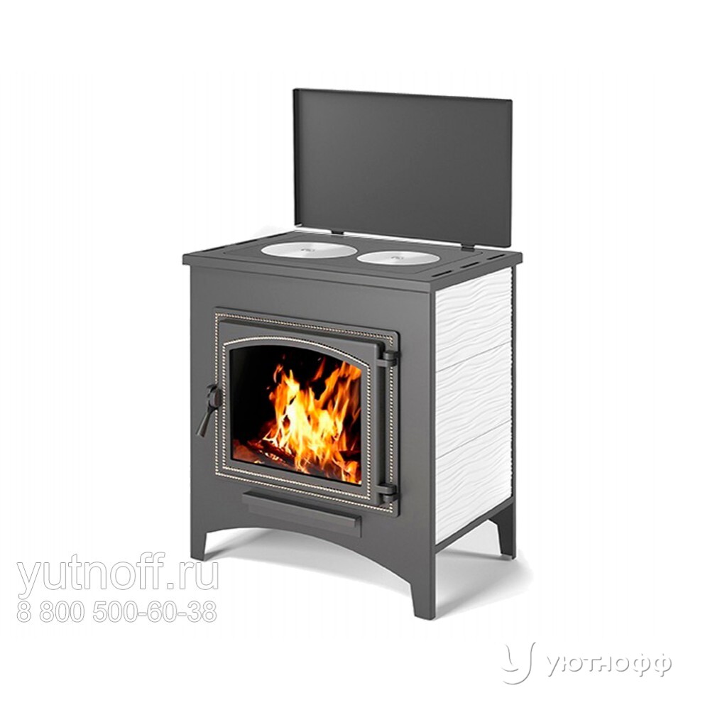 Через стекло в дверце печи-камина удобно присматривать за огнем, да и просто любоваться затейливыми играми пламени. Огнеупорное стекло, а точнее, стеклокерамика легко выдерживает температуру до 750°C. Несмотря на то, что материал прочнее обычного оконного стекла, рекомендуется соблюдать с ним такую же осторожность, особенно при транспортировке и установке - стекло может треснуть или разбиться. В этой печи использовано прямое остекление.Размеры