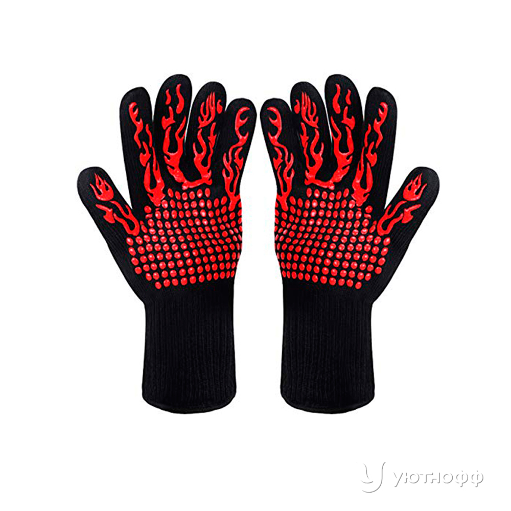 Комплект из двух жаростойких перчаток с удлиненными рукавами надежно защитит руки во время приготовления блюд на газовом гриле. Универсальные по размеру изделия не сползают и не растягиваются.
