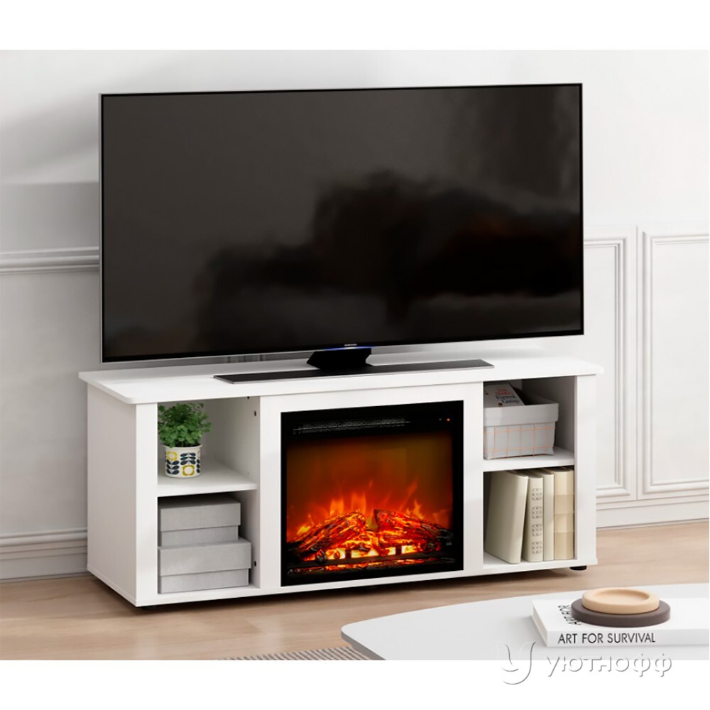 Стенд Лайт 65 - это тумба с камином на ножках из качественного материала МДФ, с электрическим очагом и боковыми полками, базовая ширина рассчитана под телевизор диагональю до 65 дюймов.
